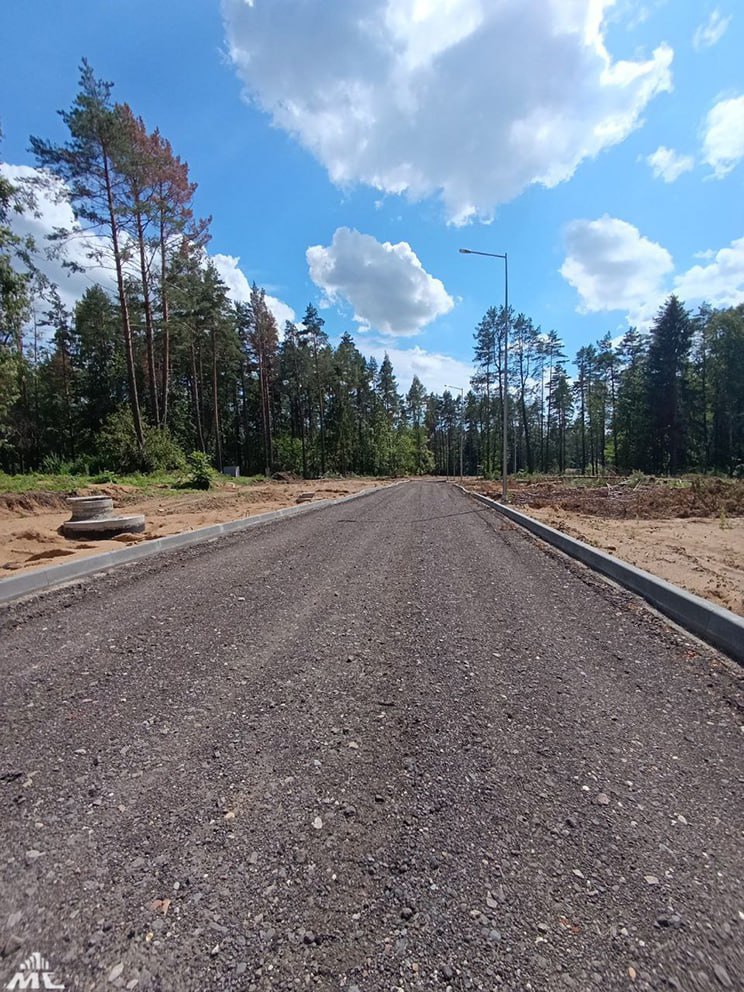 На данный момент одна из улиц уже полностью заасфальтирована. На остальных выполнено щебеночное основание (гранулят) и установлены дорожные бордюры. Также определен тип ограждения, которое планируется установить на части территории.