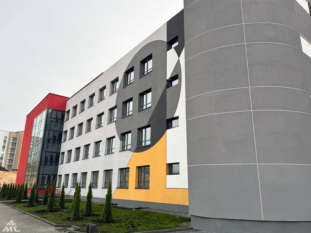 Школа на 1020 учащихся с оригинальным фасадом по мотивам работ Казимира Малевича строится на северо-западе города-спутника Смолевичи.
