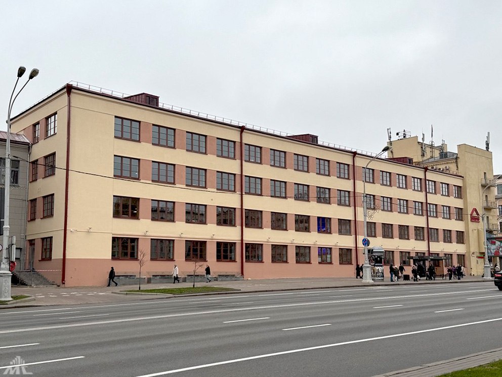 В этом году зданию-памятнику конструктивизма исполняется 90 лет. Оно уцелело в годы Великой Отечественной войны, а после освобождения Минска в нем разместилась типография имени Сталина. В 1963-1978 годах была проведена первая реконструкция, в ходе которой надстроили четвертый этаж.