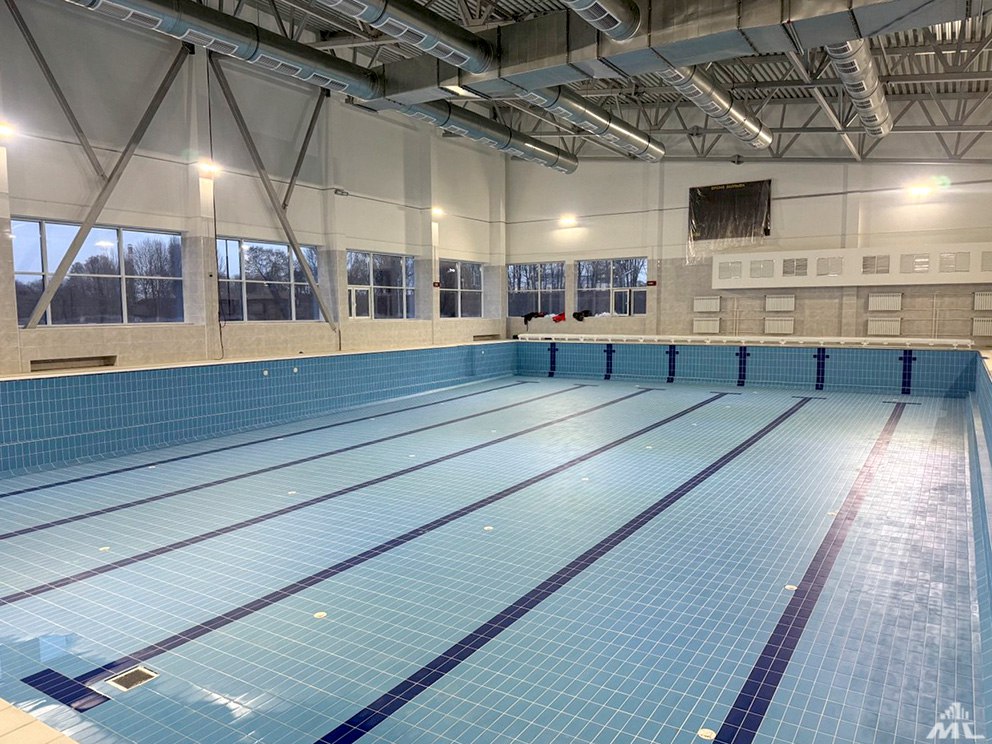 Строители треста № 35, выступающего генподрядчиком, в настоящее время выполняют финальные работы: укладывают ламинат в спортзале, монтируют конструкции в бассейне для прыжковых тумб. Завершаются отделочные работы, электромонтаж и наладка лифтового оборудования.