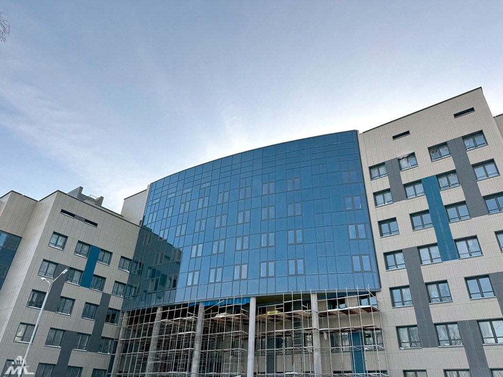 Значительная часть работ по благоустройству территории была выполнена до наступления холодов. Озеленение, включая посадку растений, запланировано на более благоприятный весенний период. В настоящее время строители завершают последние детали на фасаде здания.