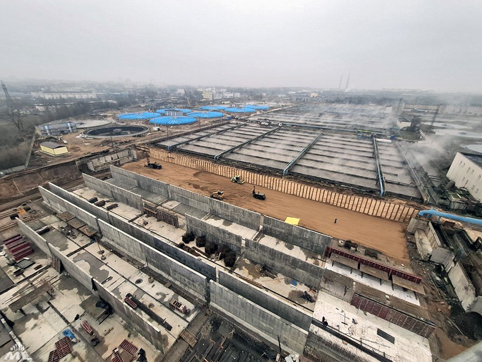В рамках шестой очереди строительства в цехе биологической очистки демонтируются старые аэротенки и идёт строительство новых, возводятся также два вторичных отстойника.