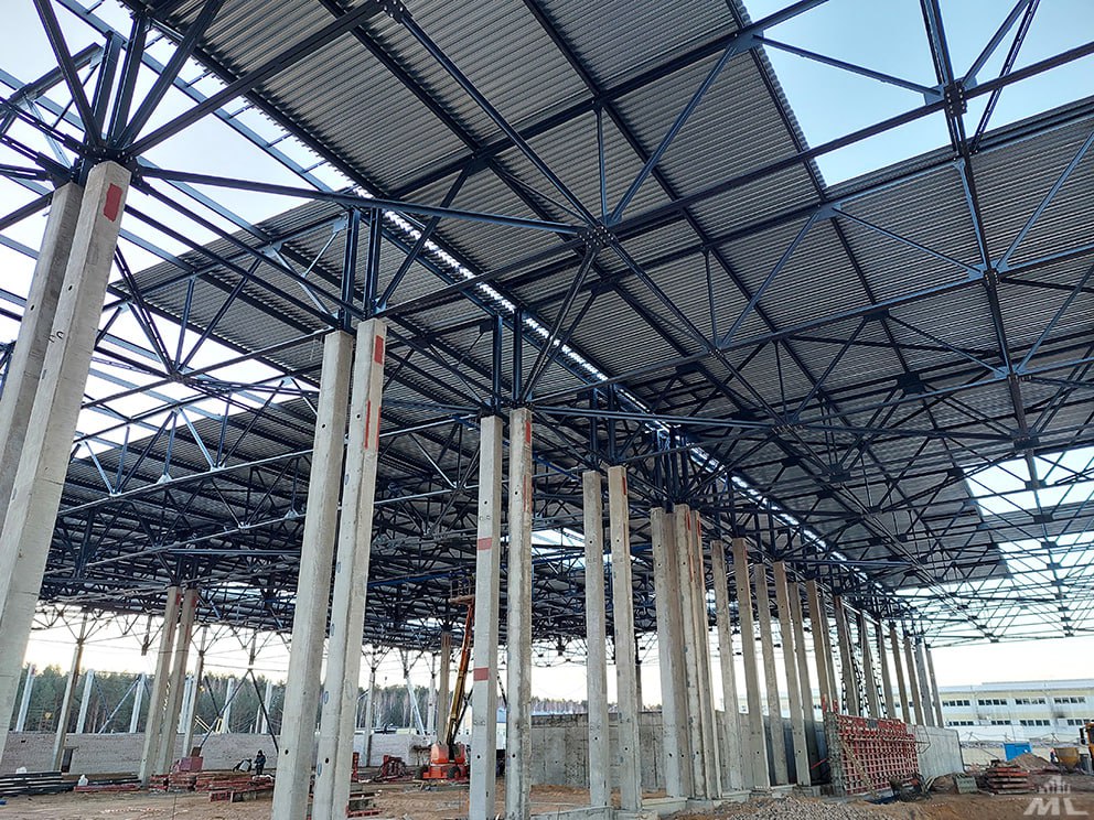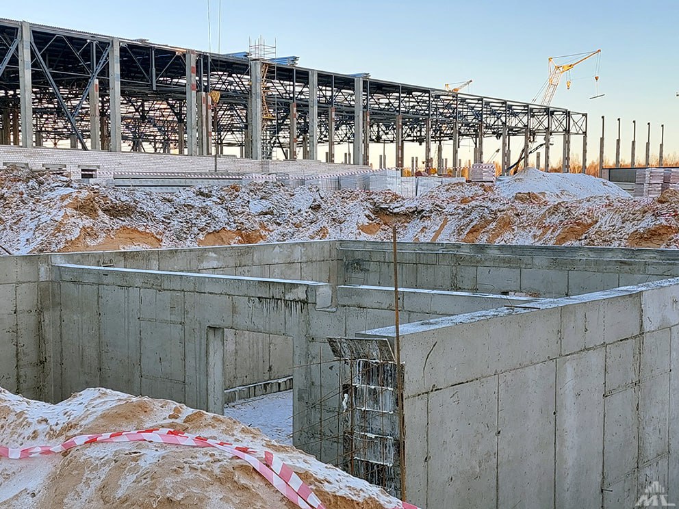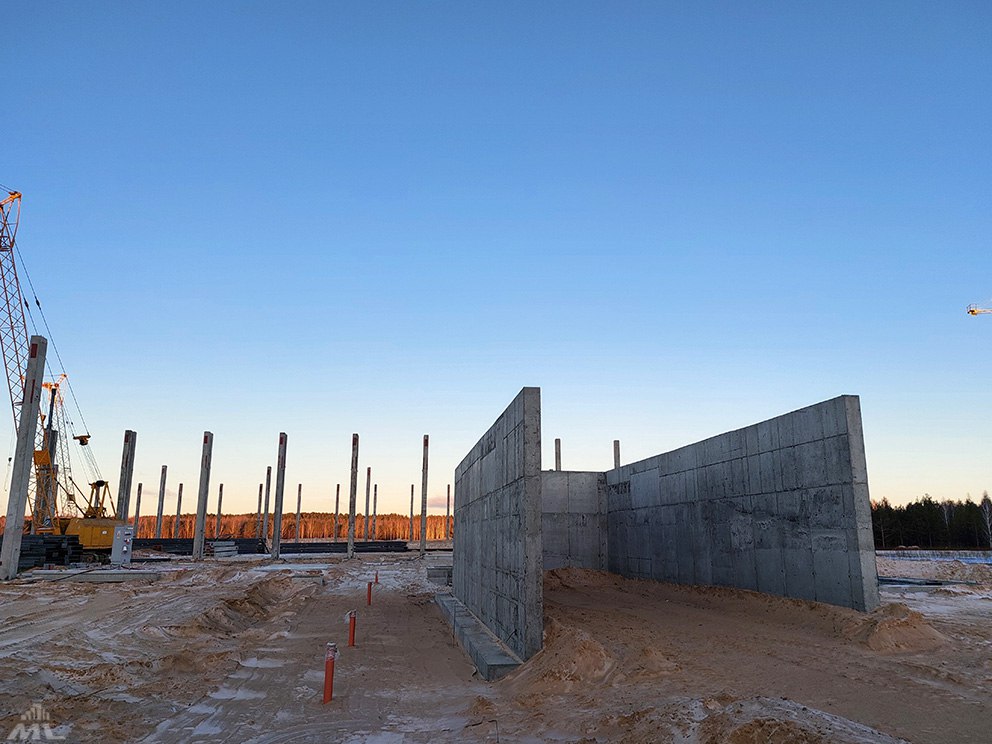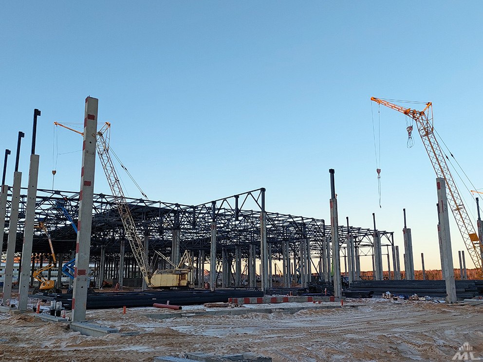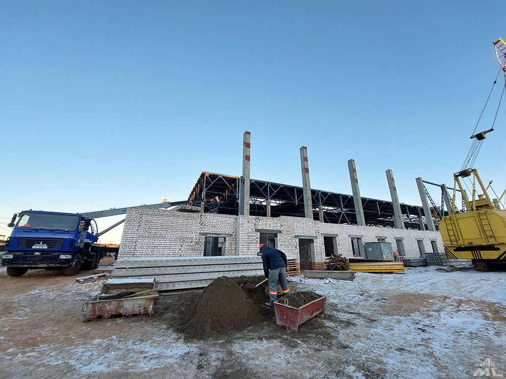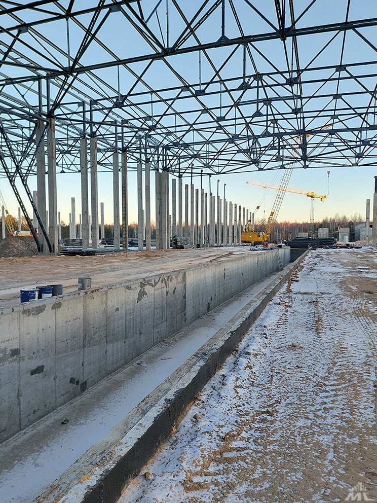 На производственном металлоконструкции смонтированы на 70 процентов, уложено более 8 тыс. кв. м профлиста на кровле. Выполнены фундаменты подпольного хозяйства, ведутся работы по устройству подпорных стен и полов.